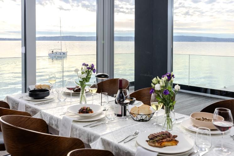 Das Restaurant bietet eine moderne Interpretation der traditionellen Küche, serviert in einem gemütlichen und komfortablen Ambiente direkt am Meer mit einem faszinierenden Blick auf die Umgebung.